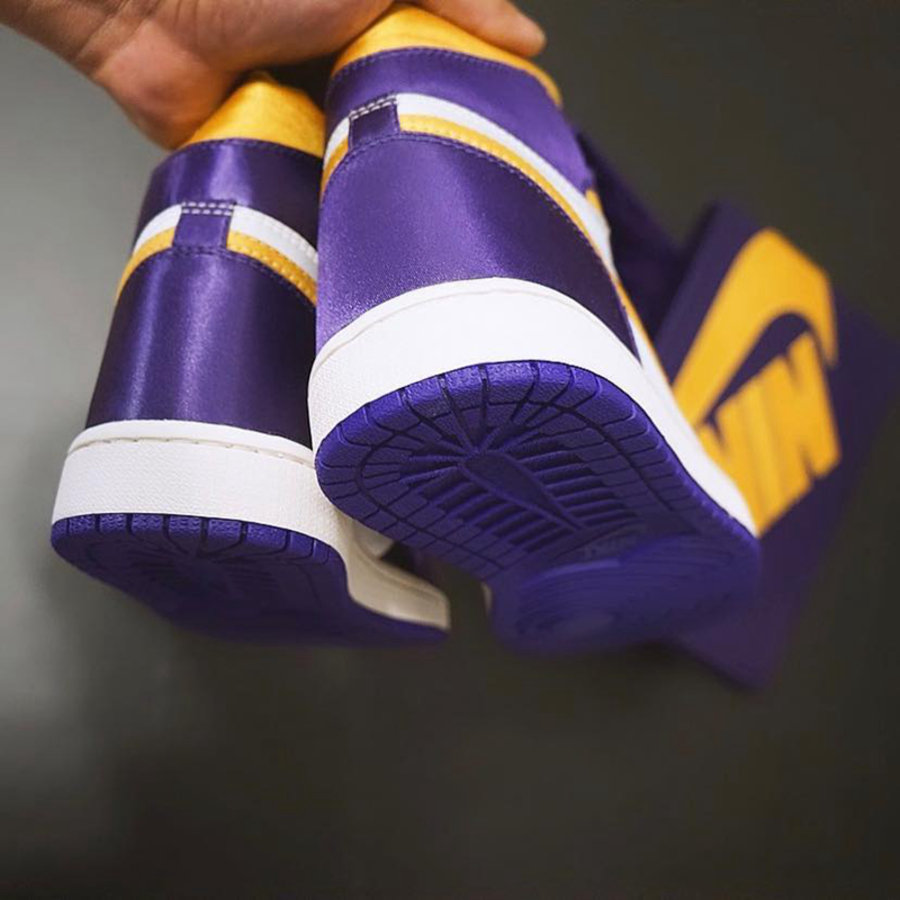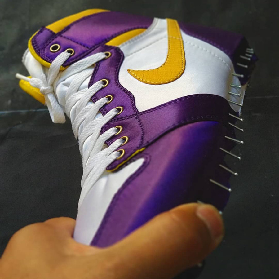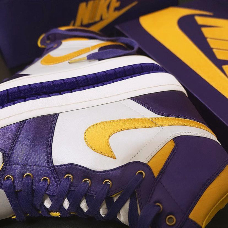 昨天我们报道了一款湖人配色的 Air Jordan 1 Mid,人气相当高。今天又有一款高帮湖人配色现身网络,而且还是丝绸材质! 鞋面以白、紫、黄三种颜色装扮,带来最具代表性的湖人装扮。白色及黄色部分使用皮革,而紫色部分则是更为华丽的丝绸材质,金属鞋带孔更是彰显了高规格。奇怪的是鞋帮处并没有飞翼 Logo 设计。 根据网友 hoopfr3sh 晒出的鞋面部件来看,是一款定制球鞋。如果这款鞋真的市售的话,你会买吗? pic via:hoopfr3sh