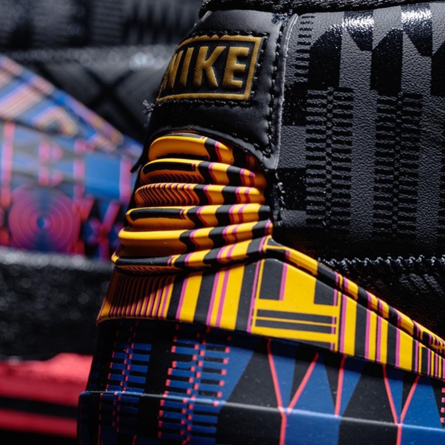 这双鞋的鞋面以非常丰富暗纹装饰,后跟选用蓝、黄、粉三色绘制出充满非洲文化特色的几何图案。大底以相同元素作为呼应,兼备强烈视觉冲击的同时又饱含浓郁的民族风情。细节质感堪比此前的 Just Don 联名,诚意满满。