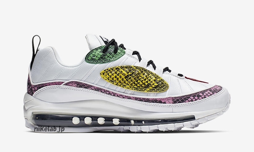 Air Max 98 可以算是近几年配色最旺盛的鞋款之一,优质的鞋面流线可以让各种配色材质得以很好的发挥。 近日,一款全新配色的 Air Max 98 官图释出。这款鞋以白色为底色,鞋面上以粉、黄、绿三色蛇纹材质装饰,点缀着荧光绿色 Swoosh Logo 与 Air Logo,质感奢华又极具特色。 据悉,这双鞋将于今年在海外部分店铺发售,喜欢的朋友可以搜索海淘入手,更多球鞋资讯请继续关注我们后续报道。
