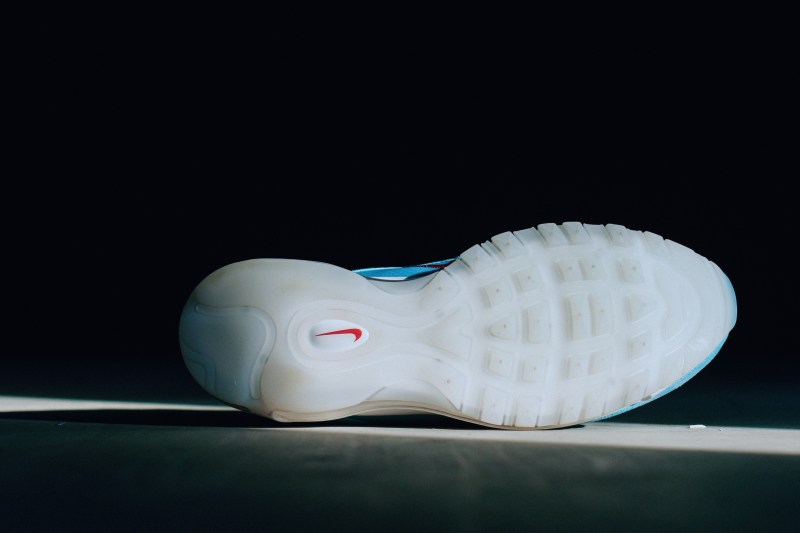 其中 Nike Air Max 97 SH Kaleidoscope 鞋款,由来自上海的茹秋石设计。围绕着 “上海的速度” 为主题展开,以 “万花筒” 的概念体现对漂浮在上海陆家嘴天空中的云朵的印象,加上水的瞬息万变。
