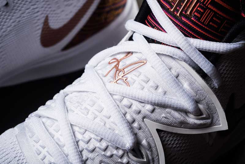 除此之外,还有一款同样惊喜的 ROKIT x Nike Kyrie 5 联名配色也在网上曝光。这双鞋由洛杉矶知名店铺 ROKIT 专门为欧文全名星周末打造的特别配色。