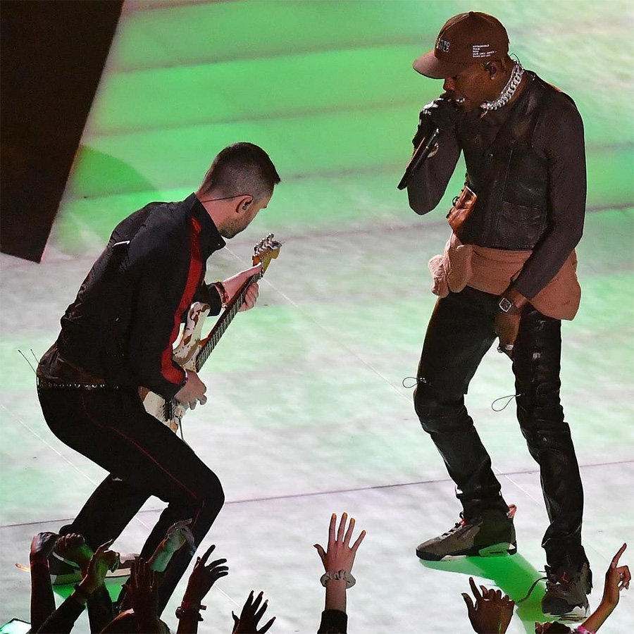 Travis Scott 作为表演嘉宾,登上第 53 届 Super Bowl 超级碗的中场秀,他从头到脚的装扮自然颇为讲究,脚上的 TS x Air Jordan 6 则同样吸引了所有人的目光。