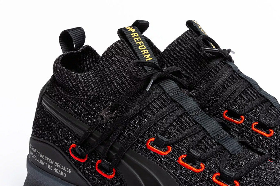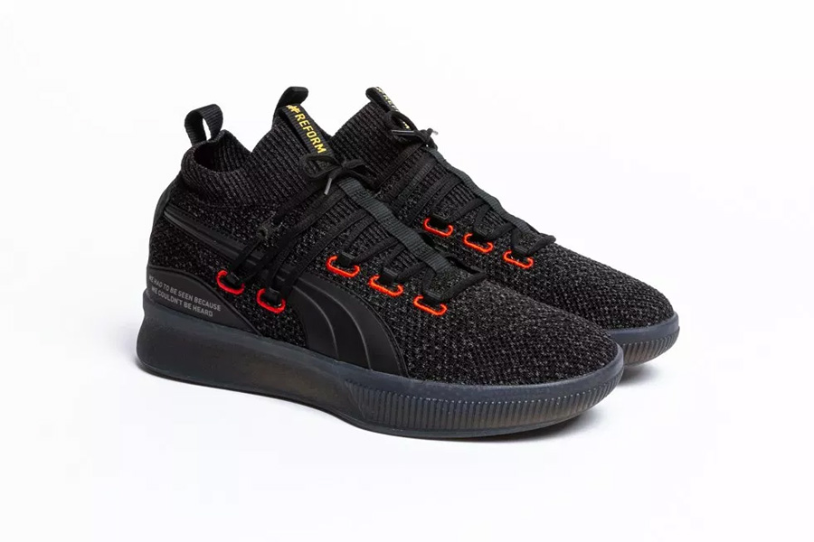 PUMA Basketball 旗下的首款实战篮球鞋迎来新配色的发售,眼前这双 PUMA Clyde Court #REFORM 目前已经在海外登陆,发售价为 $120 美元。 以全黑的编织鞋面搭配黑色的鞋底,鞋带孔以鲜艳的红色装饰,有着不错的点缀效果。 半透明的水晶外底透露出 #REFORM 字样,直击主题。 后跟的 PUMA Logo 和鞋舌鞋提上的 #REFORM 字样都以金色装点,为这双鞋画龙点睛,注入华丽的王者气质。