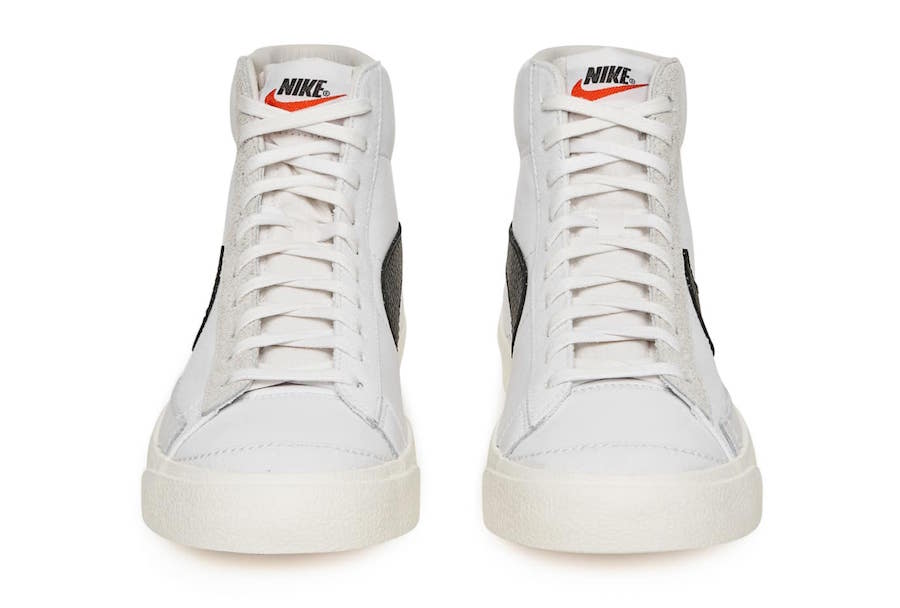 然而这一「倒钩」装扮,居然也出现在了 Nike 的官方设计中,在 Slam Jam x Nike Blazer Mid 联名鞋款上出现。
