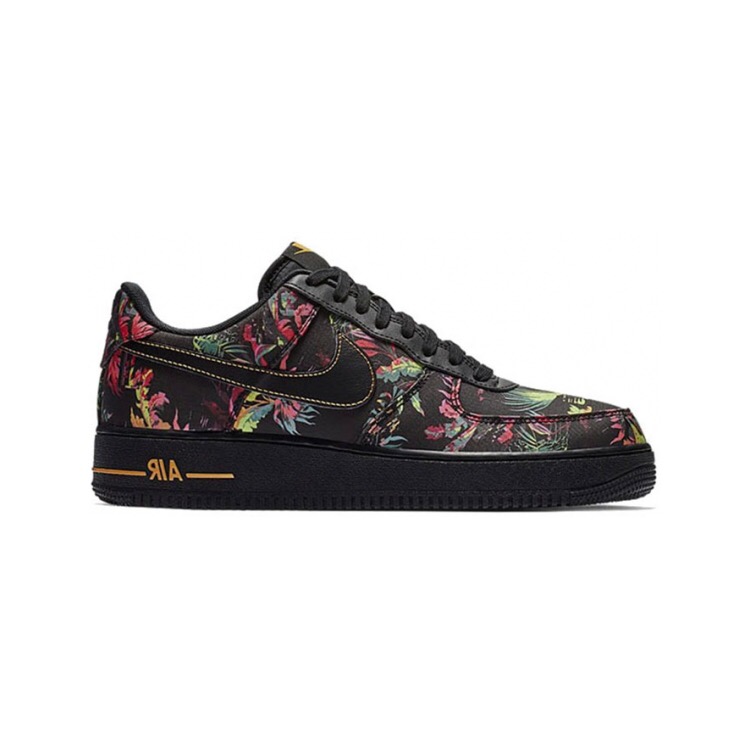 纯黑色鞋面上点缀极具地域特色的花卉纹样,构成了这双辨识度极高的黑花卉配色。在整体配色方案上和情人节发售的花卉喷如出一辙,中底上的橘色 Air Logo 是整双鞋的点睛之笔。