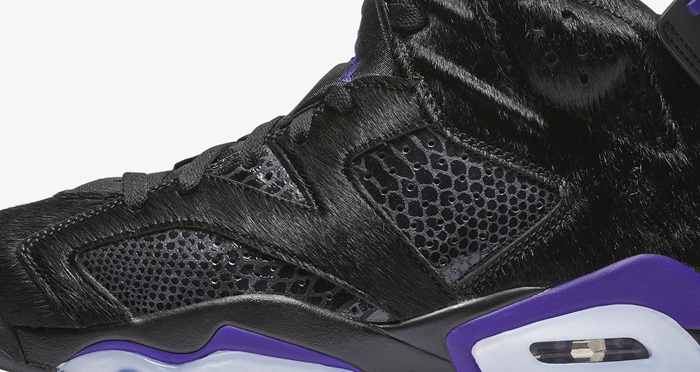 采用纯黑衬托夏洛特黄蜂队标志性的紫色,彰显本次主题。辅以冰蓝大底收尾,凸显简约配色理念。鞋面用料也颇为考究,选用易于打理且散发独特光泽的牛毛呈现,两侧皮革以蛇皮纹理妆点,奢华气质展露无疑。