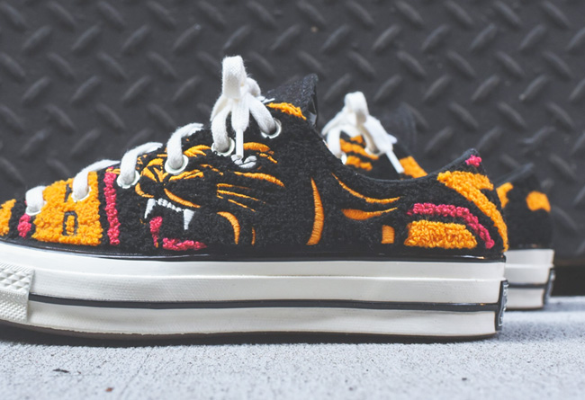 这双 UNDEFEATED x Converse Chuck 70 OX 以视觉张力十足的老虎图腾,彰显了 UNDEFEATED 的 “不败” 精神,同时有着极为丰富的细节。