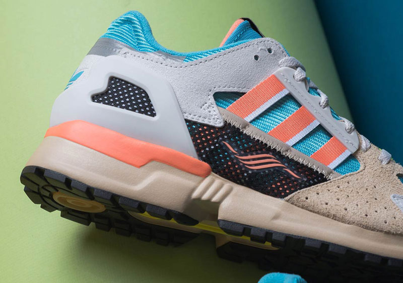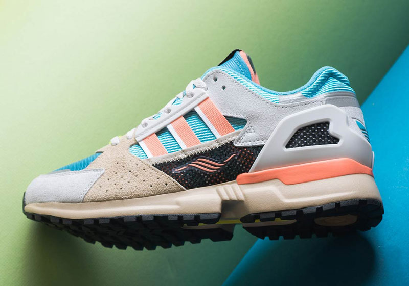 新推出的配色以棕色和灰色为基调,饰有蓝天和珊瑚橙组合的鞋面。鞋外侧 adidas 的 Logo 也是以弹力带形式呈现,在保证舒适度的同时为整双鞋带来了时尚感。