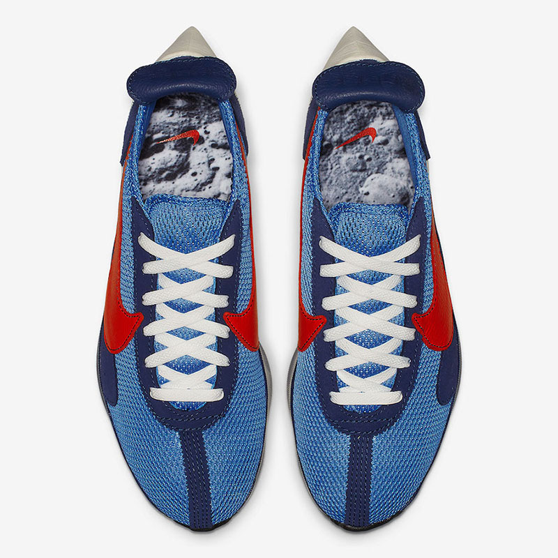 以 1972 年推出的 Nike Moon Shoes 元祖跑鞋为灵感,结合突破性科技 React 中底,Nike 在去年推出了全新跑鞋新品 Nike Moon Racer。