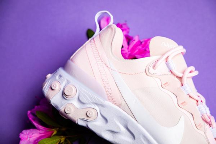 先前就曾曝光的 Nike React Element 55 “樱花粉” 配色,在近日于海外 Politics 网站,抢先发售。