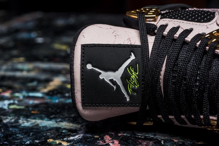 鞋面由淡粉色同黑色交织呈现,细节之处不仅有醒目的金扣加持,大理石花纹与鞋舌上亮眼的荧光绿点缀,更是耳目一新!最为独特的是,鞋头与后跟都经过特殊处理,散发出亮晶晶的细腻光泽,非常少见!