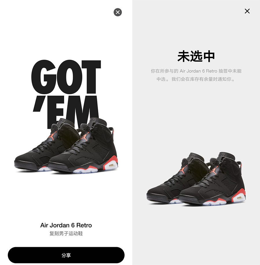 而随即在 SNKRS APP 登记也以「未抽中」告终。