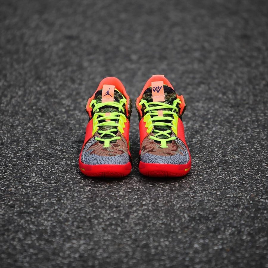 本次最新战靴 Jordan Why Not Zer0.2 凭借巨大风格转变和夸张设计,一经问世便吸引众多实战党的青睐。而眼前这款全明星配色更是将缤纷色彩与野性花纹相融合,颇有 “What the” 装扮的吸眼气氛!