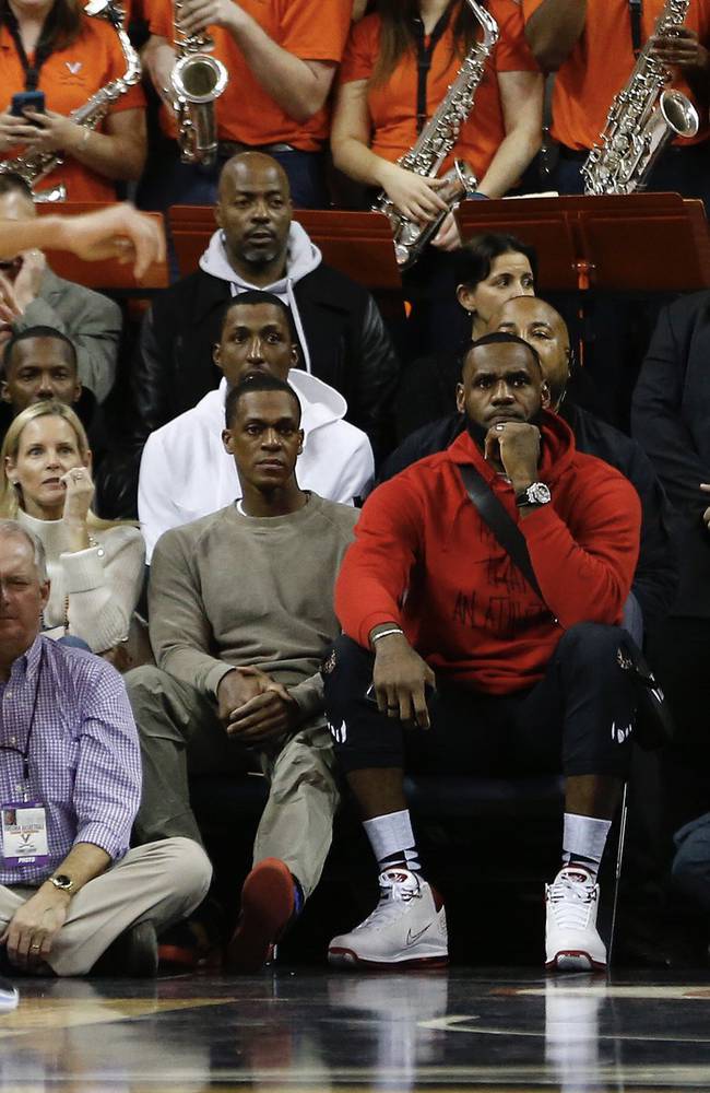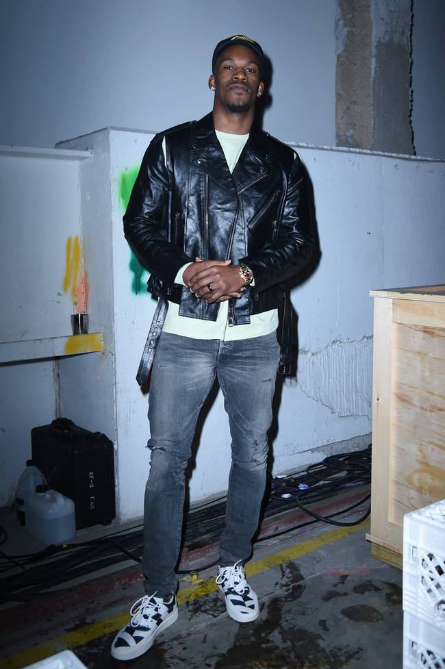 艾佛森现身赛场,没有上脚 Reebok 鞋款,则是以鸳鸯 Air Jordan 1 “Homage to Home” 搭配他的黑色裤装。