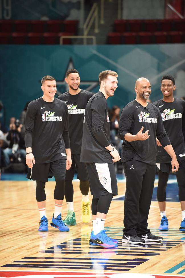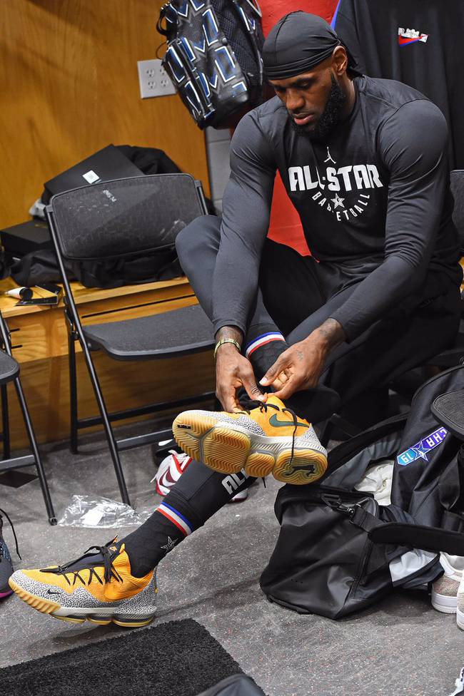 首先是詹姆斯上脚了还未发售的 LeBron 16 Low Safari,Luka Doncic 则展现了一双 PE 配色的 Kobe 4 Protro。