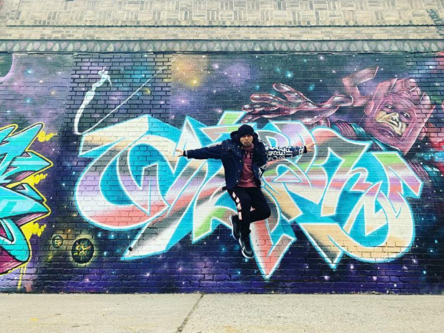 看得出来心情非常好,除了漫步街头,还忍不住跃起,想必对这双 “未来球鞋” 十分中意!