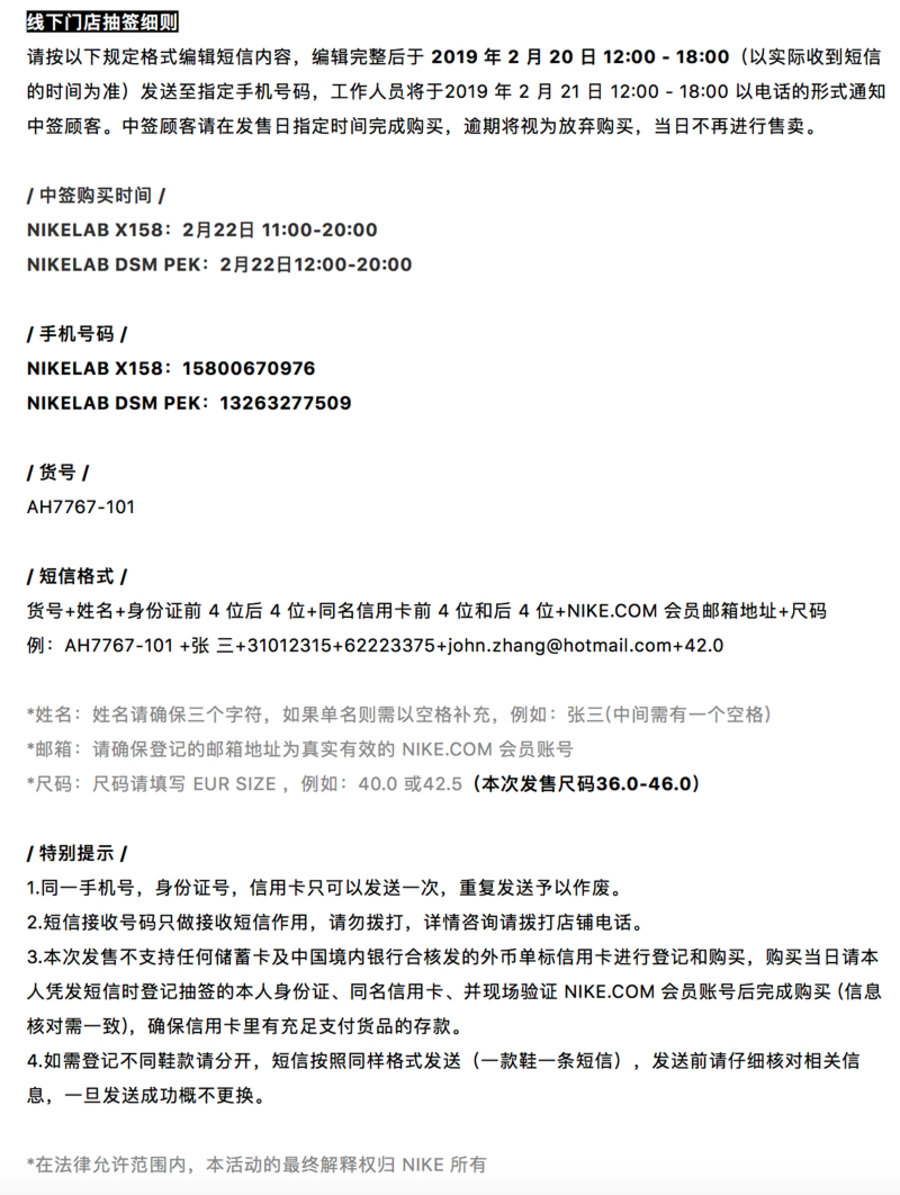 今天 NikeLab 也开启短信抽签通道,想了解更多详情可以关注 NikeLab 微信官方公众号。