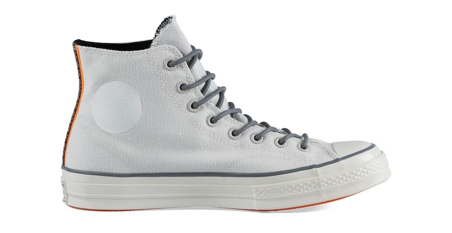 在局部图曝光之后,完整鞋款实物近日终于与大家见面,可以看出此次联名的不少亮点。选用了最具人气的 Chuck 70 鞋型,共有黑色和白色两款配色,分别以黄色和橙色点缀。