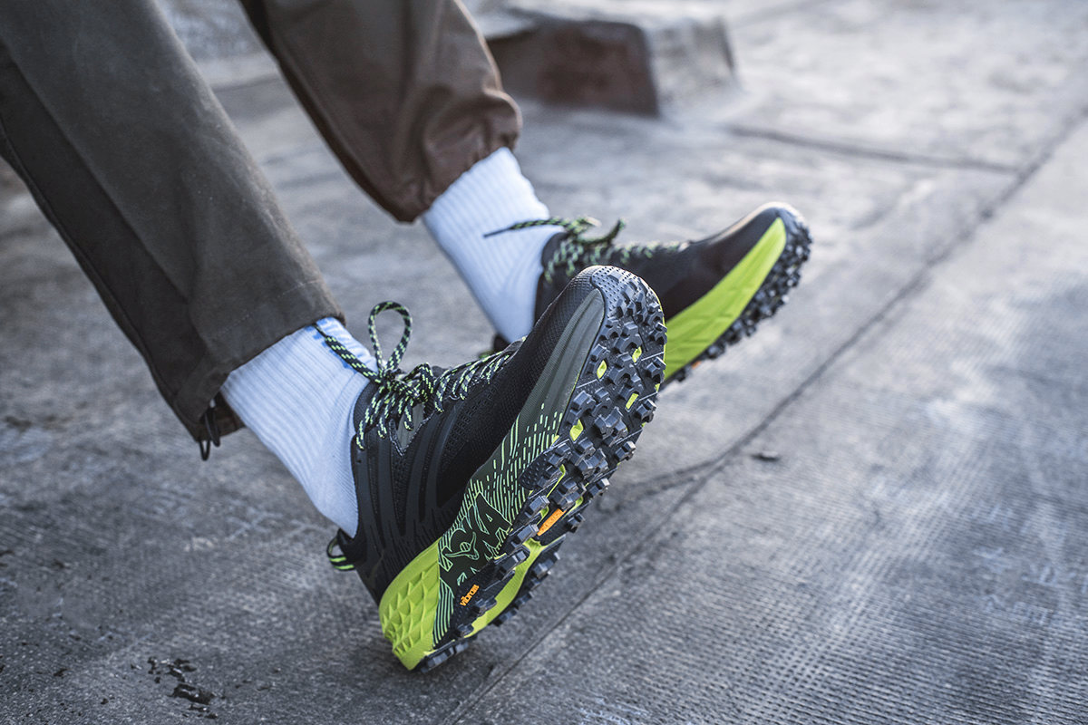 那么采用 EVA 和 RMAT 科技制作的中底以及 Vibram® 大底,则在兼具跑鞋脚感之余还带来强大户外功能性!