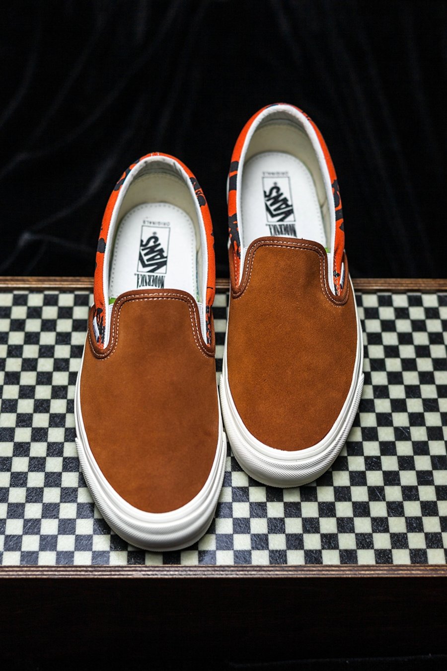 小编今天开箱的是联名系列中的 OG Slip-On LX 鞋型,也就是我们熟悉的一脚蹬,而名称中 LX 区别于专柜中的布面版本,将以 Vault by Vans 一贯的高规格呈现!