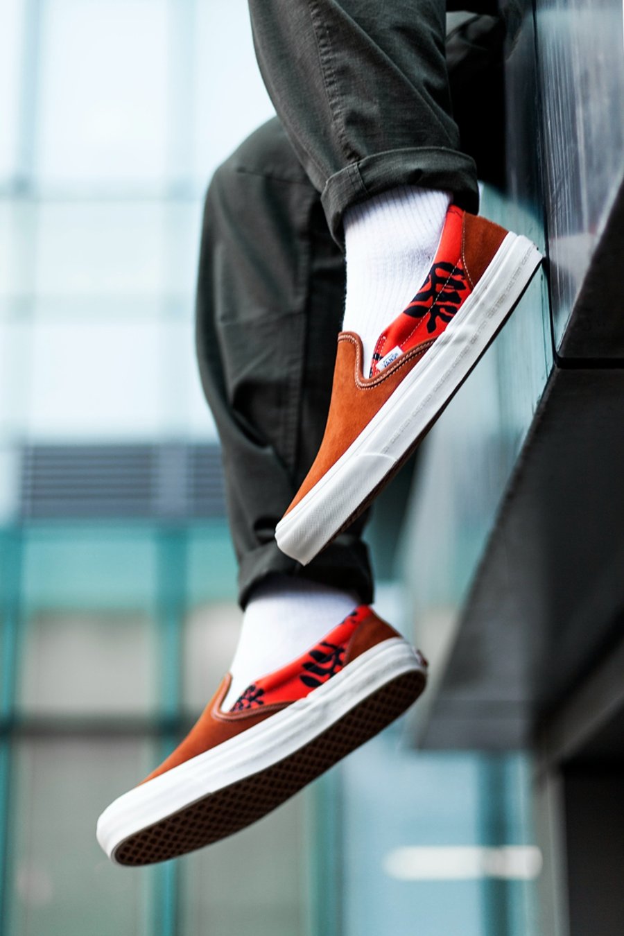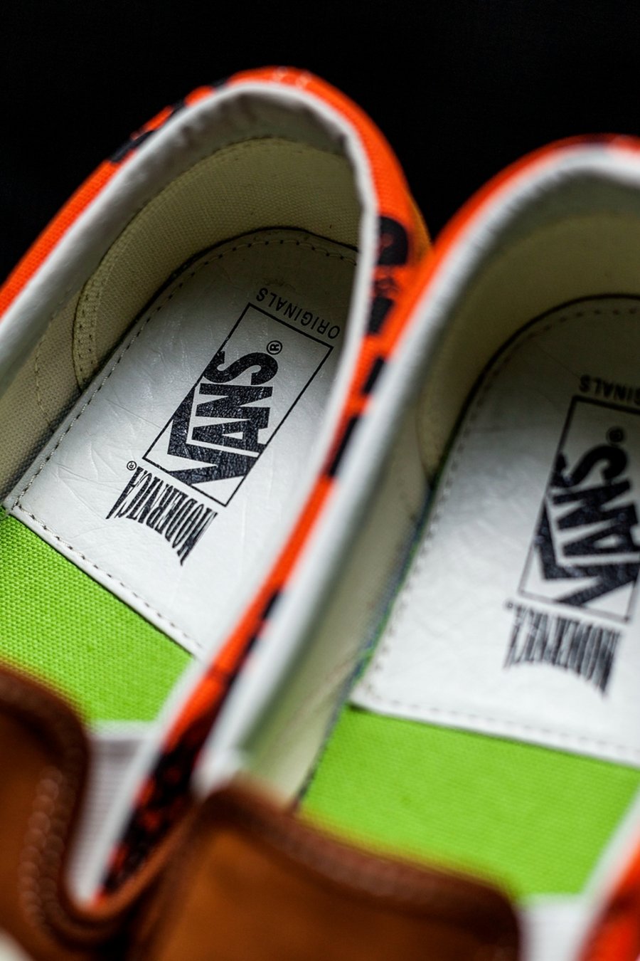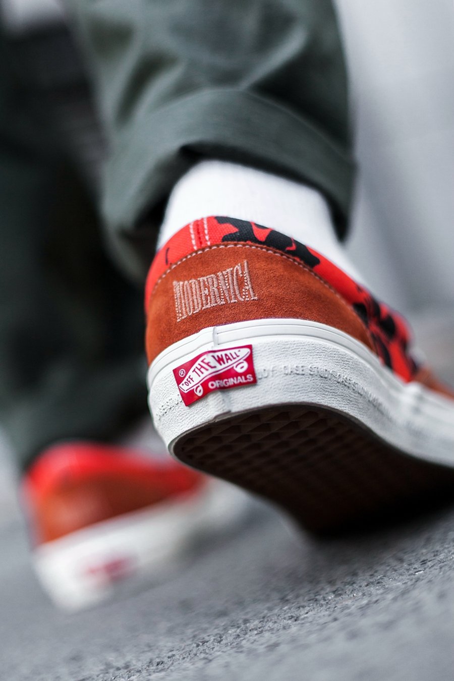 后跟除了保留 VANS 经典红色贴标外,Modernica 品牌 Logo 以刺绣展现,低调但做工一丝不苟!