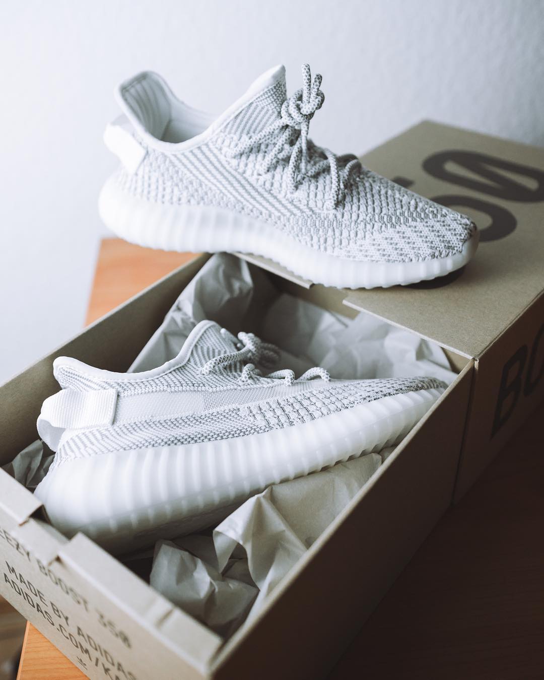 其中号称补货百万数量的纯白 Yeezy 350 V2,毫无疑问当选为全系列中货量最大的配色。而满天星凭借稀少的货量,超越 “黑色三兄弟” 称为最稀有的 Yeezy 350 V2。