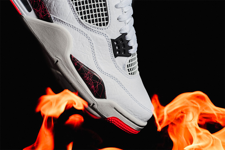 这双 Air Jordan 4 “Hot Lava”承袭了本家族一贯的运动活力气质,在清爽的白色格调之余,以熔岩红和大理石纹装饰,既有夺目的反差点缀效果,又有精致细节的视觉跳动感。