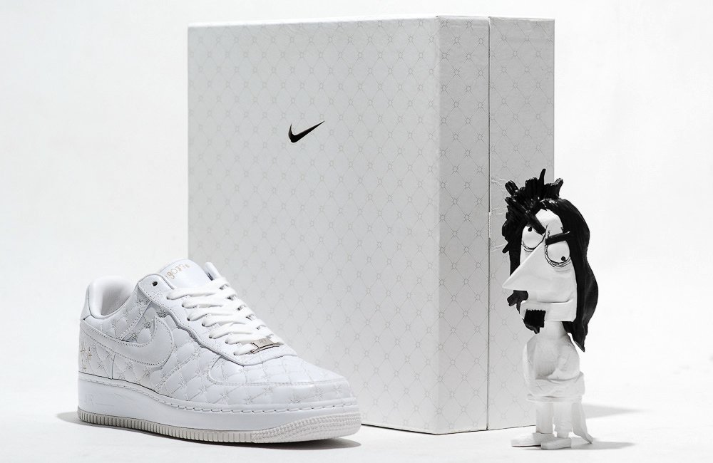 十多年前,Nike 为了纪念 Air Force 1 诞生 25 周年,邀请著名玩具设计师 Michael Lau 合作打造一双疯人院 Air Force 1。