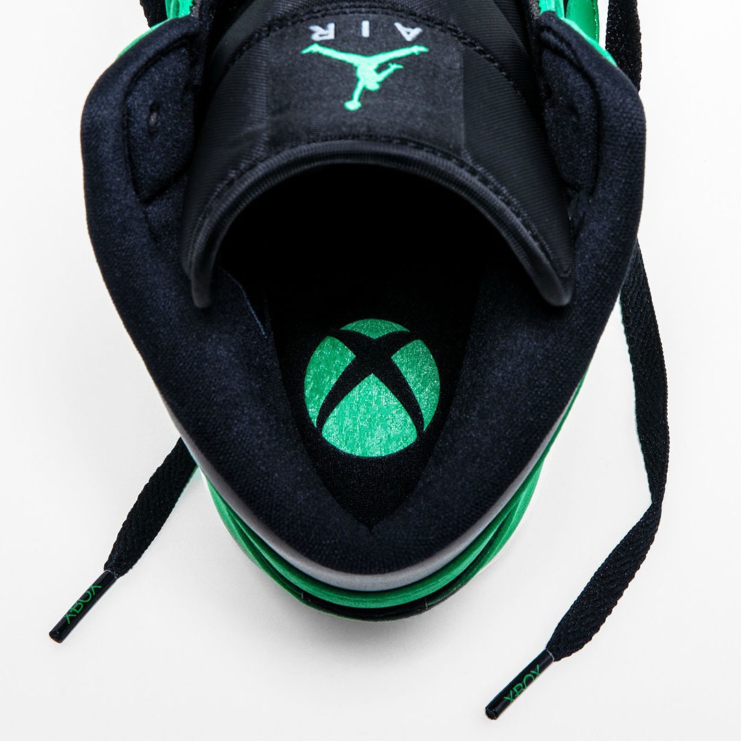 这双 Xbox x Air Jordan 1 Mid 的夜光大底颇为梦幻,鞋垫、鞋带头也有明显 XBOX 标志,完美的量身定制,可惜并没有市售,只提供给 E3 展中的员工。