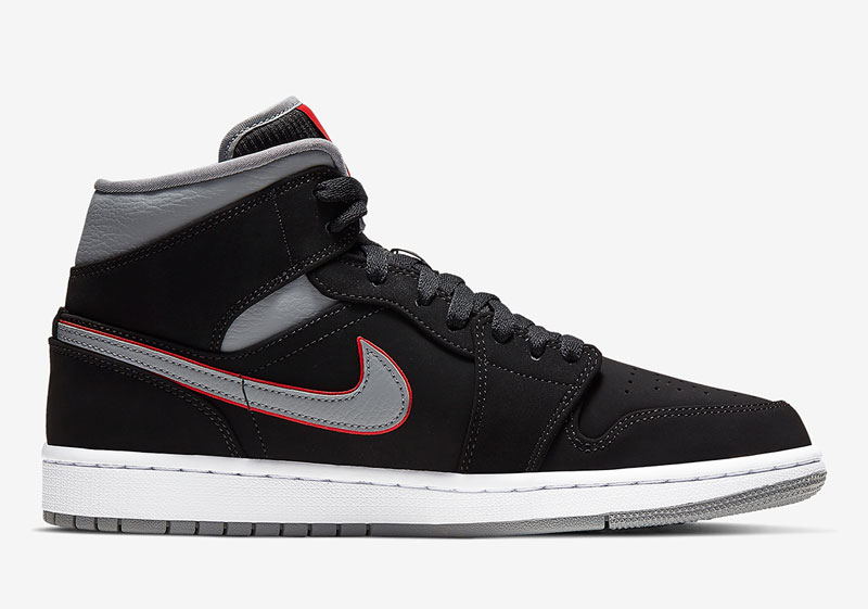 近日,一款全新配色的 Air Jordan 1 Mid 曝光。鞋面采用黑色牛巴革,搭配上灰色 Swoosh 带来一种高级感,同时鞋舌的 Logo 以红色呈现,彰显其身份。