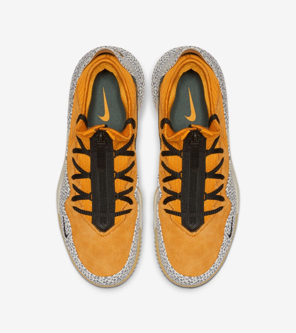 这款配色采用经典的 “Safari” 大理石花纹与棕色皮革材质搭配,整体质感非常抢眼。在鞋带位置,加入了延伸至鞋舌的大拉链,更便于穿脱。