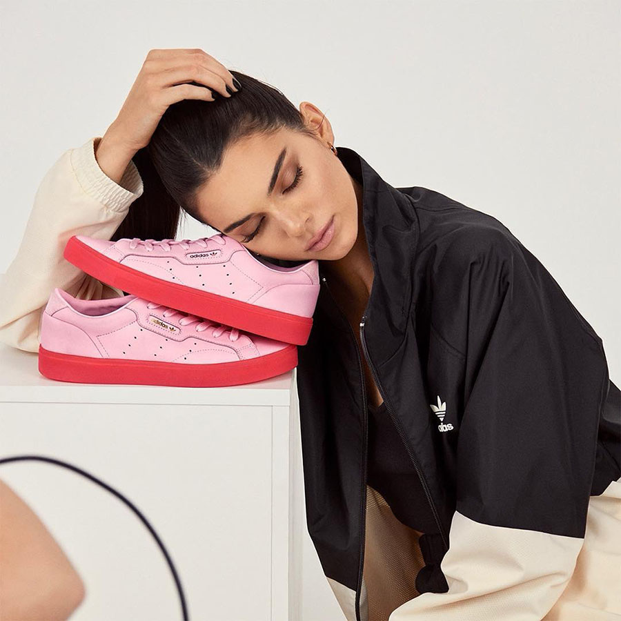 除了杨幂的亲着上脚展示外,这次三叶草也是请到了 Kendall Jenner 出镜,打造了一个型录大片,展示了多个 Sleek 配色的穿搭效果。