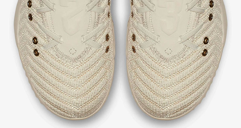 此双配色最吸引人的就是其独特且霸气的外观设计!米白色的鞋身完美凸显出鞋帮处环绕的棕色皮带以及金色的 LBJ Logo 锁扣,再加上中底处麻绳样式的金色螺旋花纹,神似古罗马角斗士脚下的战靴!
