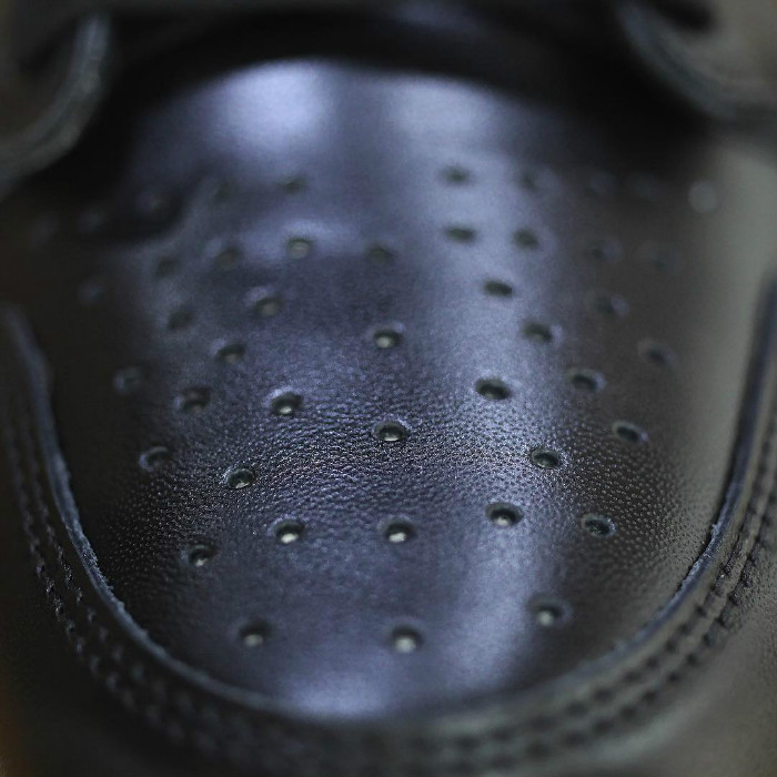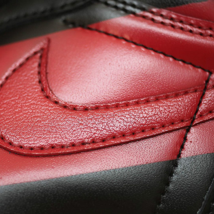本次采用光泽感十足的光滑皮革打造鞋身,沉稳大气的黑色皮面,以鲜艳的红色「油漆条」点缀,米色外底收尾,沉稳之中又致敬「禁穿主题」,在经典气质之余,又拥有极高的视觉辨识度,让人过目不忘!