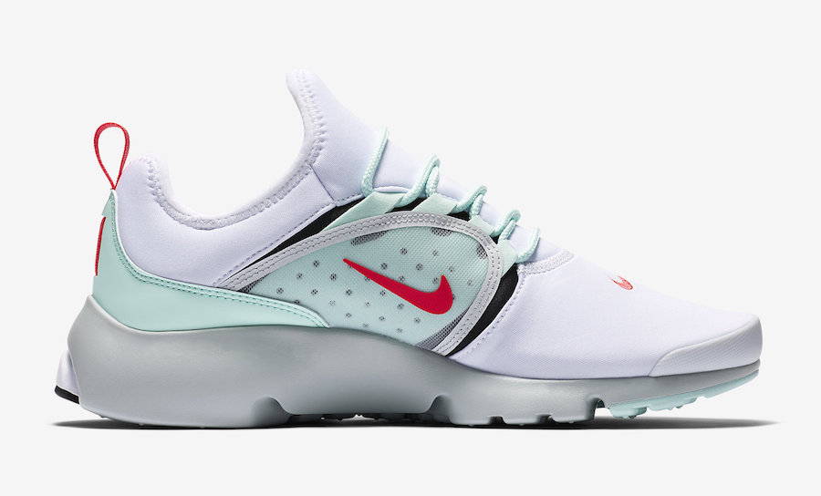 在鞋型变化上,Fly World 保留 Presto 系列的袜套雏形,将橡胶鞋面支撑替换为透明网状覆膜。