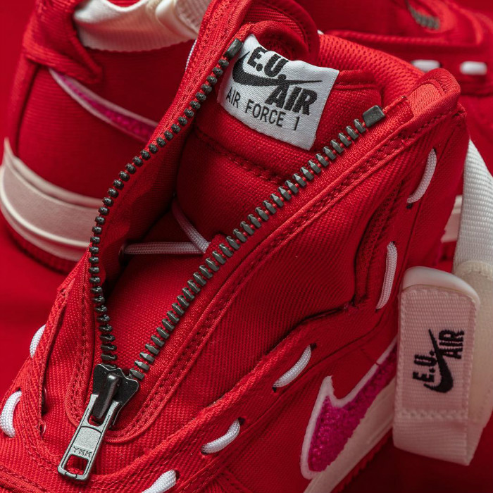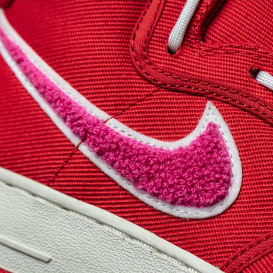 鞋面采用醒目红色呈现,鞋帮绑带与中底以简约白色妆点,形成鲜明对比。粉色毛圈 Nike Swooosh 与 鞋舌桃心图标相呼应,凸显甜美可爱之余,又颇具质感。