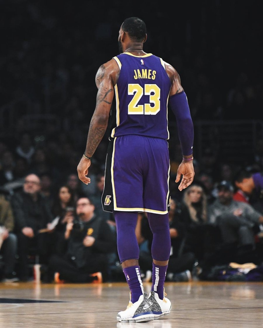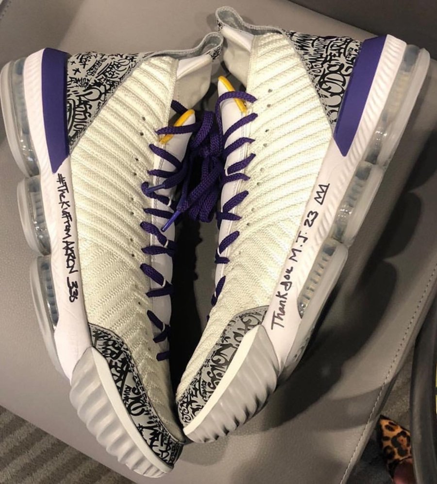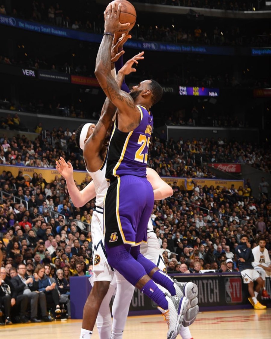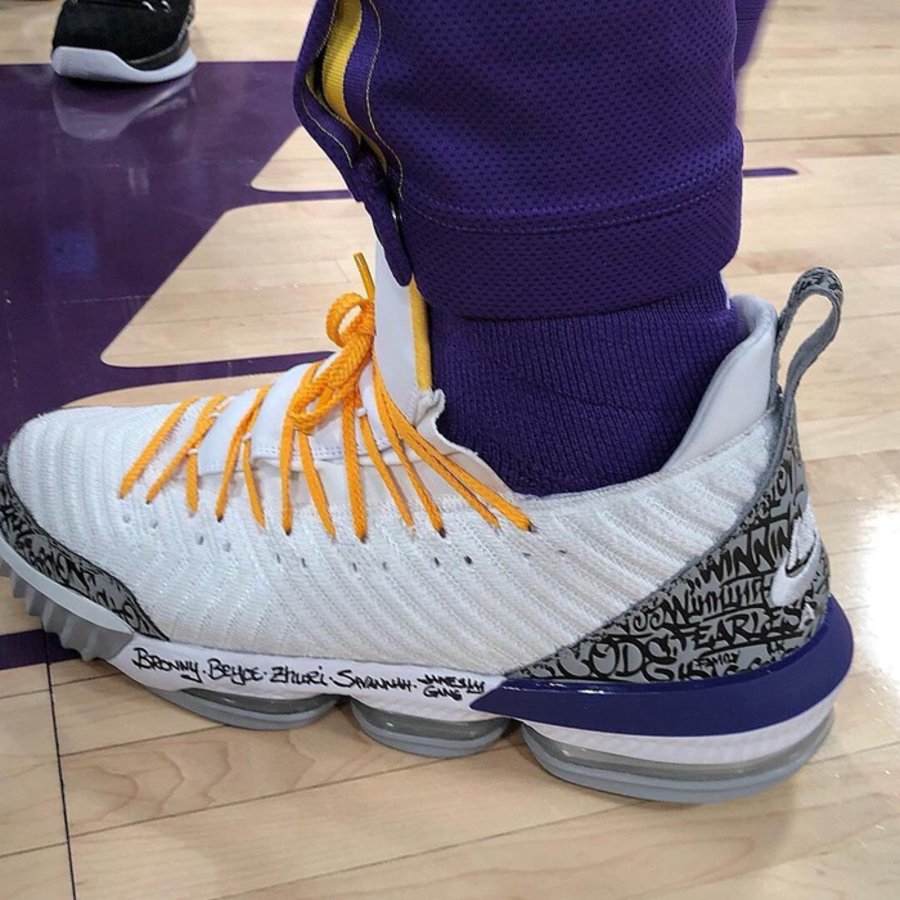 在昨日湖人对阵掘金的比赛中,詹姆斯以 31 分 7 篮板 7 助攻的准三双数据,完成对篮球传奇乔丹常规赛总得分的超越。而他上脚的一双 Nike LeBron 16 PE 配色也是格外吸睛。