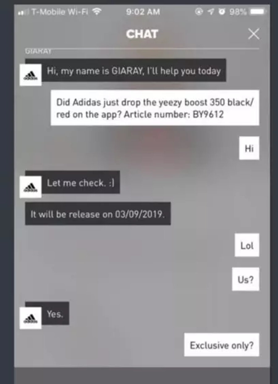 与此同时美国网友也晒出了 adidas 客服截图,可以看出这位客服确认了美国 adidas 官网、YEEZY SUPPLY 也将在 3 月 9 日再度发售三款黑五配色。