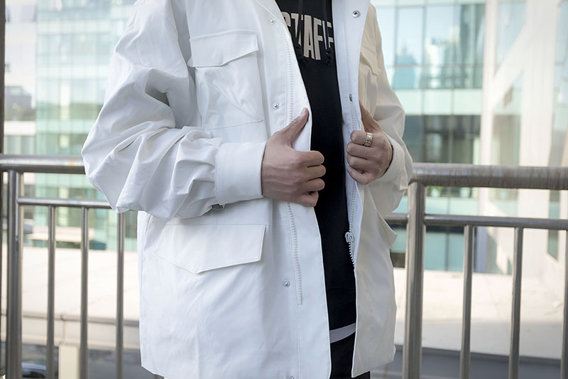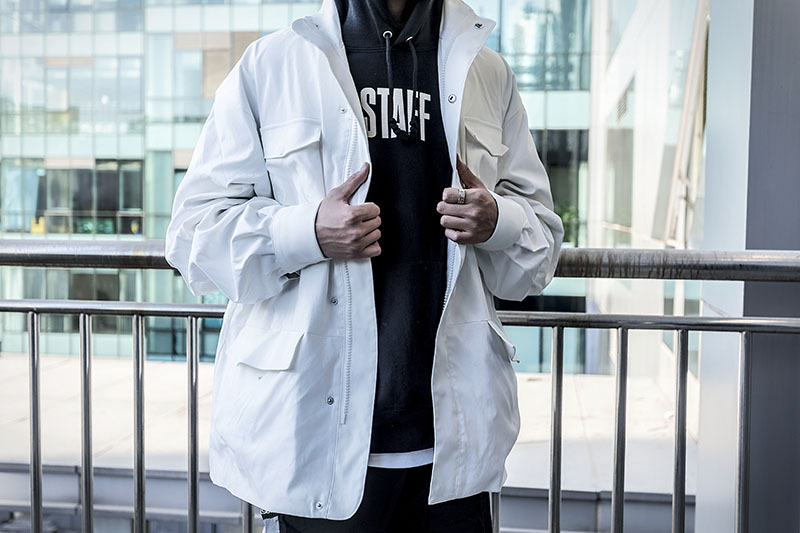 白色弯刀袖 M65 外套承袭了一贯的干练气质,百搭又丝毫不突兀。
