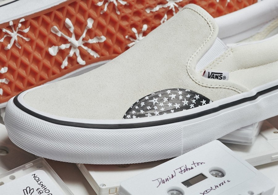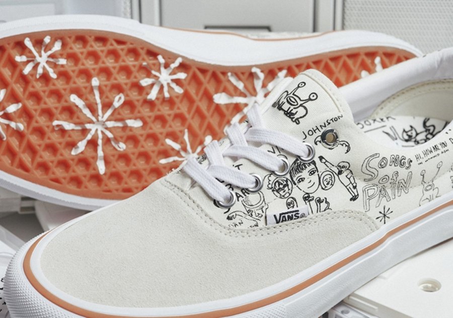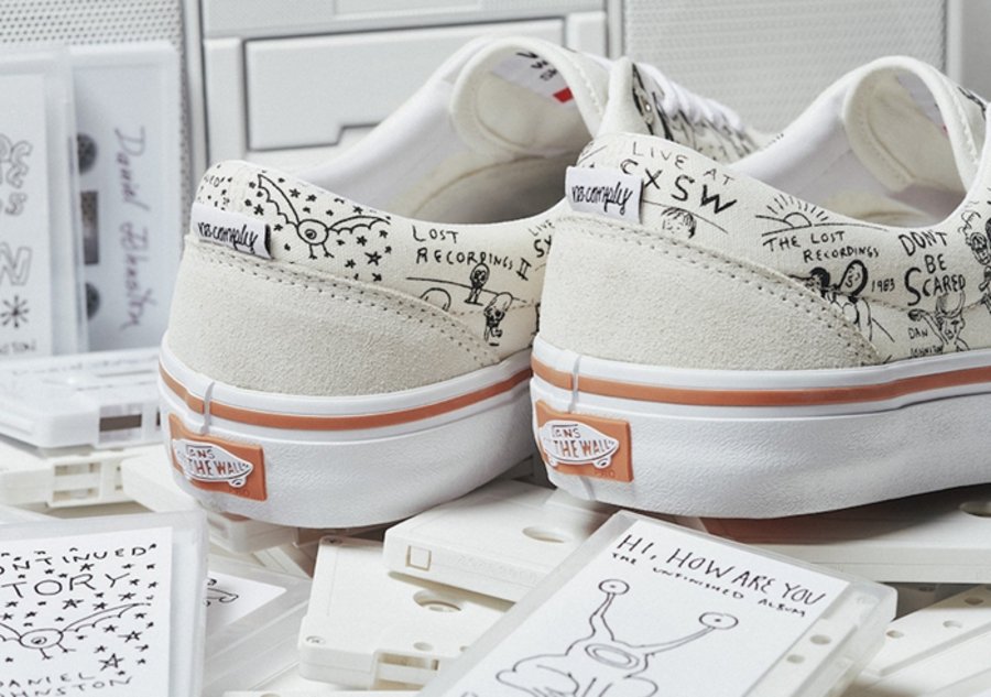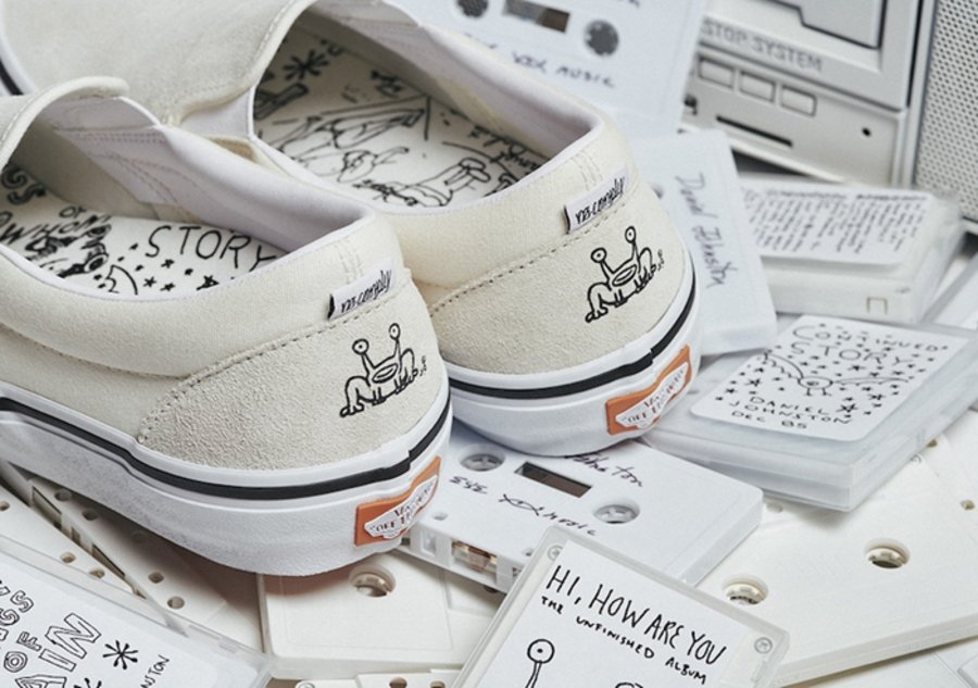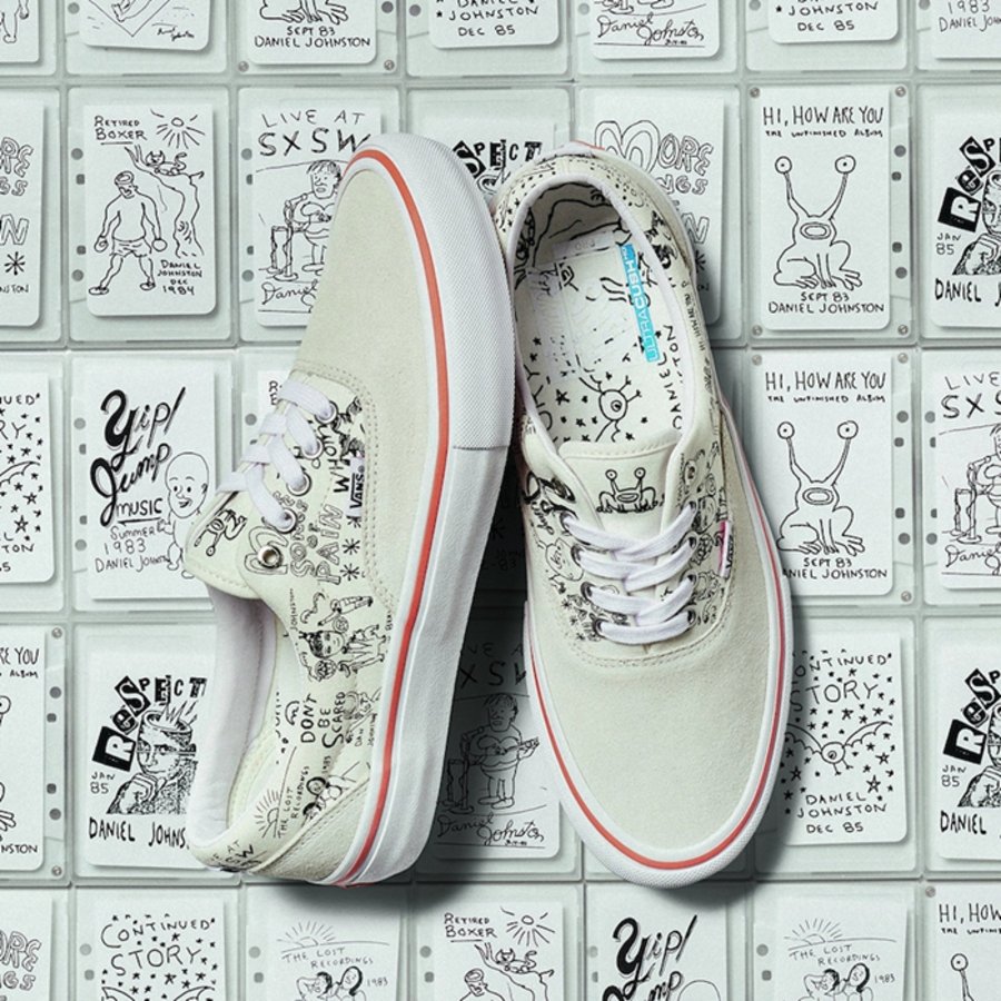 美国德克萨斯州的传奇艺术家 Daniel Johnston 一直与 Vans 保持密切的合作关系。为庆祝他们合作的第 12 个年头,将于近期携手同地区的 No-Comply Skateshop 店铺推出全新的 Vans Era 与 Slip-On 系列。