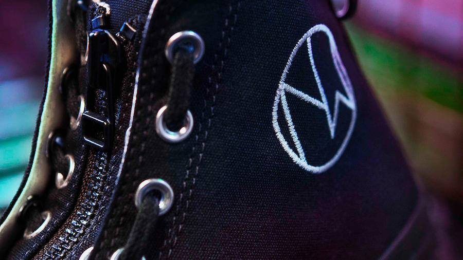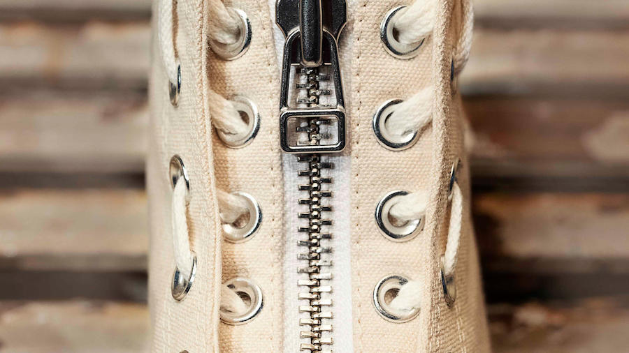 鞋面采用帆布物料打造,有黑、白两款配色。鞋面设计酷似近期的 E.U. x Air Force 1,通过鞋带穿插将拉链固定在鞋面上,取代传统的绑带系统,方便穿脱的同时带来强烈机能感。拉链末端还加入金属环设计,与 Cult 电影的叛逆主题相符。