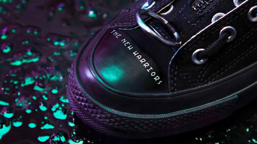 鞋头处印有 “The New Warriors” 字样,这也是此次联名的主题。鞋帮外侧绣有 “NW” Logo 与之呼应。整体质感很简洁,极具街头气质。