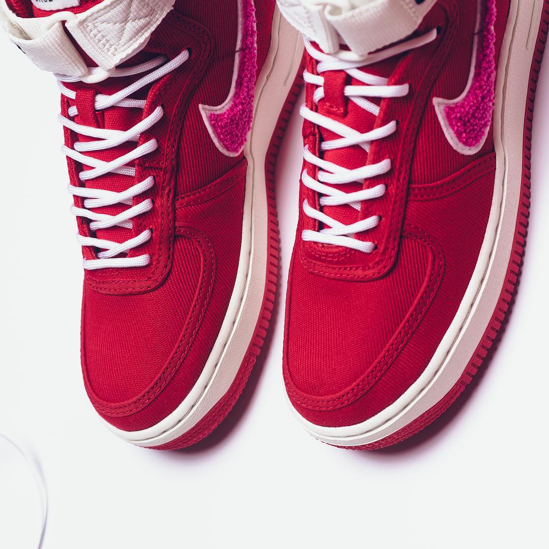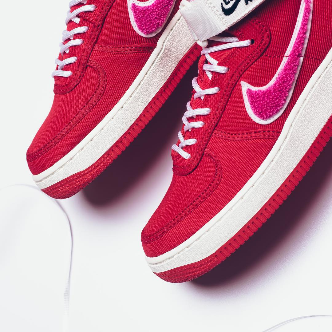 这双鞋款以非常抢眼的大红色鞋面,搭配粉紫色 Swoosh Logo,尼龙材质鞋面搭配摇粒绒质感钩子,显得别具质感。