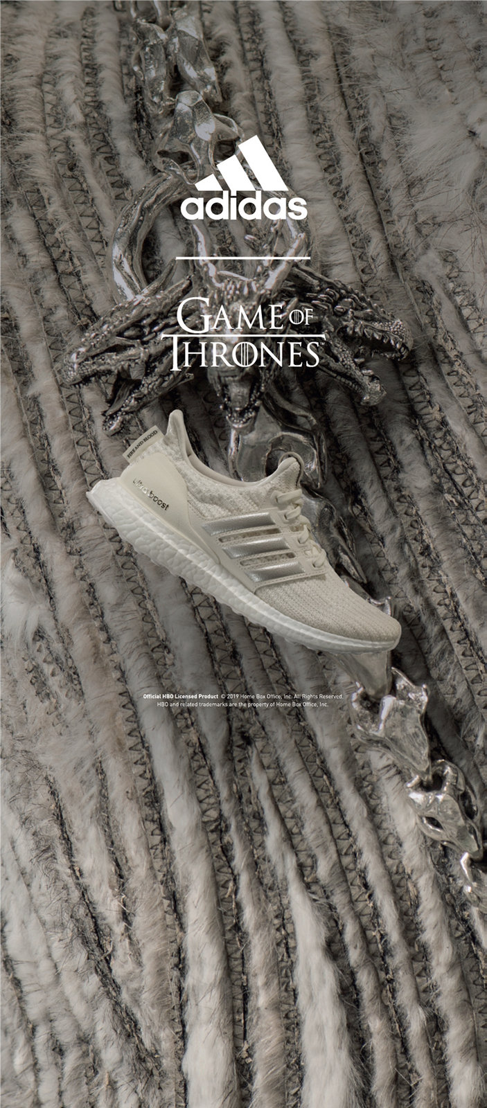 在第八季,也就是终章篇来临前,adidas 将与 《权利的游戏》 推出 GAME OF THRONES x Ultra BOOST 系列联名。