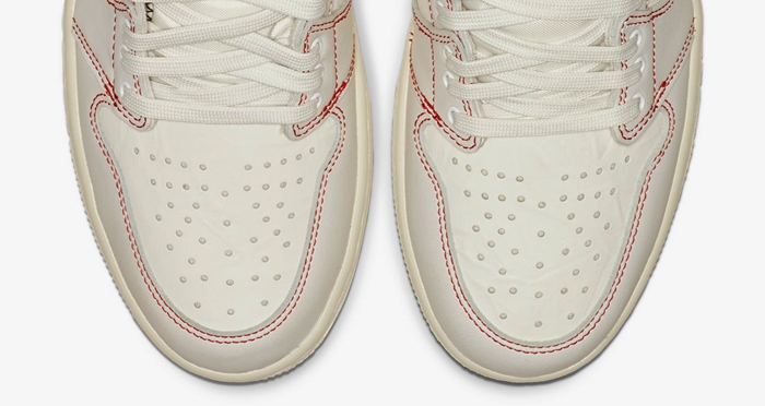 鞋面的车线及 Swoosh 边缘均以红色勾勒,颇具二次元画风。而鞋舌处的黑色缝线,又散发出几分解构气息。