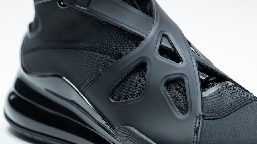 夸张前卫的纺织鞋面与超高鞋靴设计,带来不俗的科幻感。源于 Air Jordan 8 的鞋舌绑带格外吸睛,同时在鞋带系统中也融入了锁扣设计,更加便于日常穿脱。