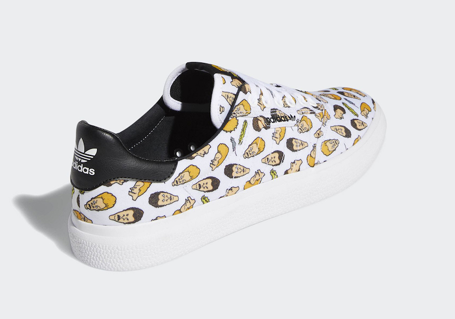 鞋款选用 adidas 经典的 3MC Vuls 作为设计蓝本,纯白色的鞋身,辅以两人头像进行点缀,致敬经典的同时,展示十足的街头气息。