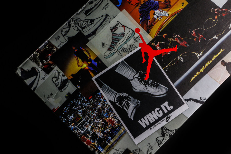同时鞋盒还是特殊版本,印有各时期 Micheal Jordan 的广告,与之前蓝麂皮 Air Jordan 11 Low “RE2PECT” 的鞋盒相同。