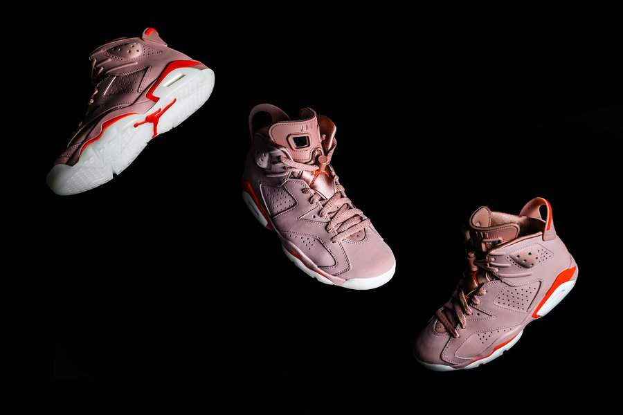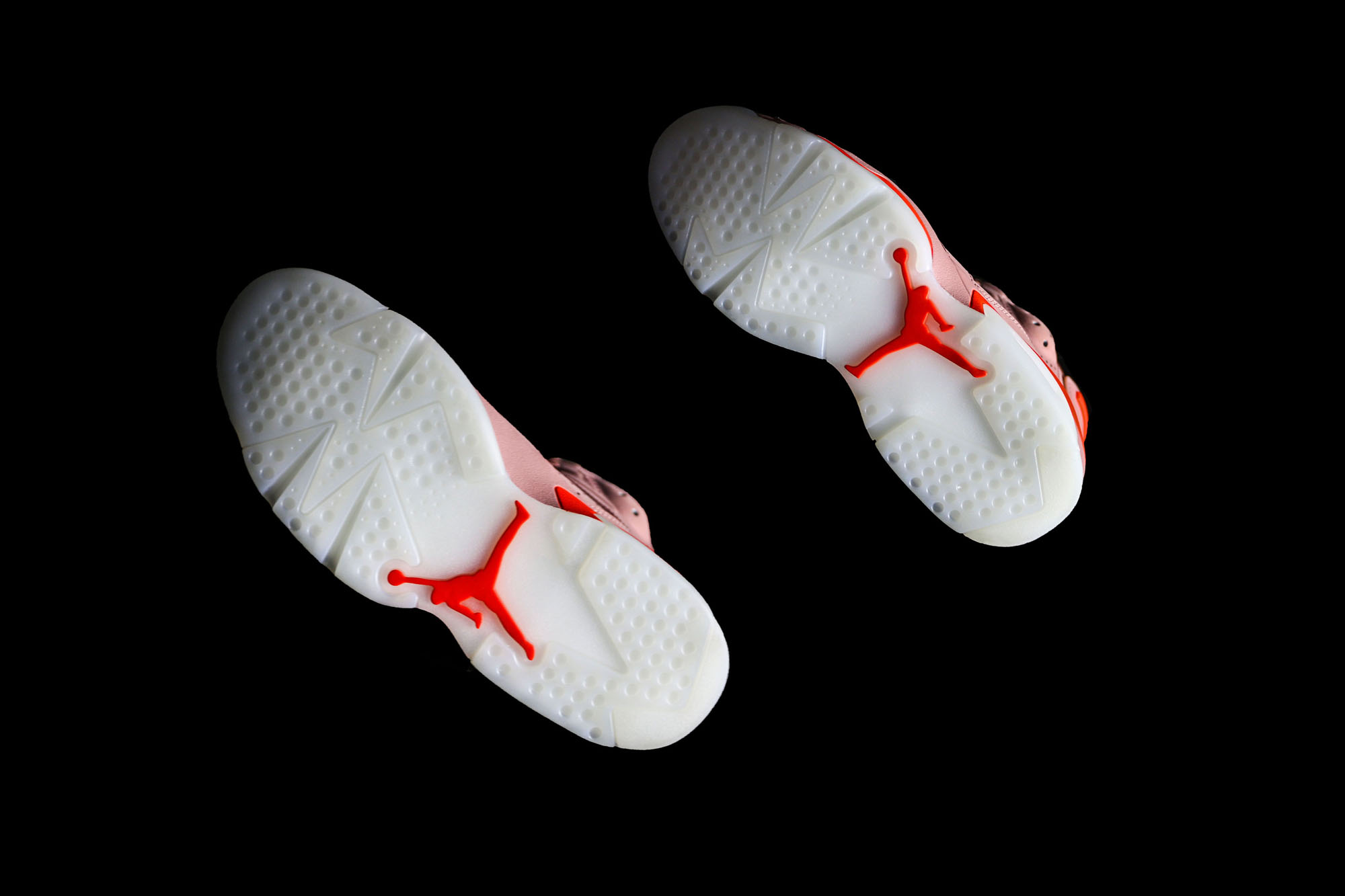 整双鞋以樱花粉色为主调,细节中搭配红色点缀,在所有 Air Jordan 6 中还是第一次。