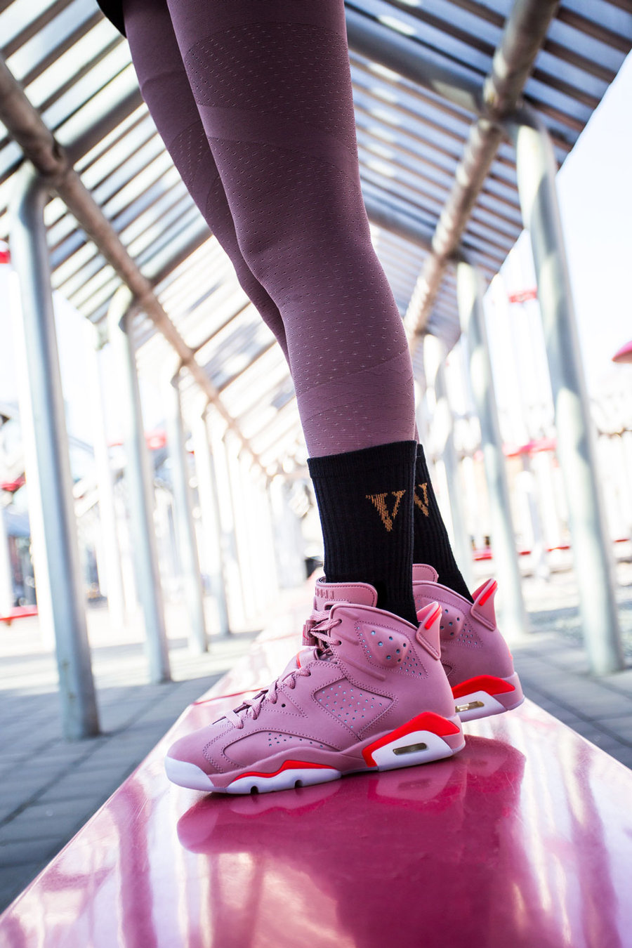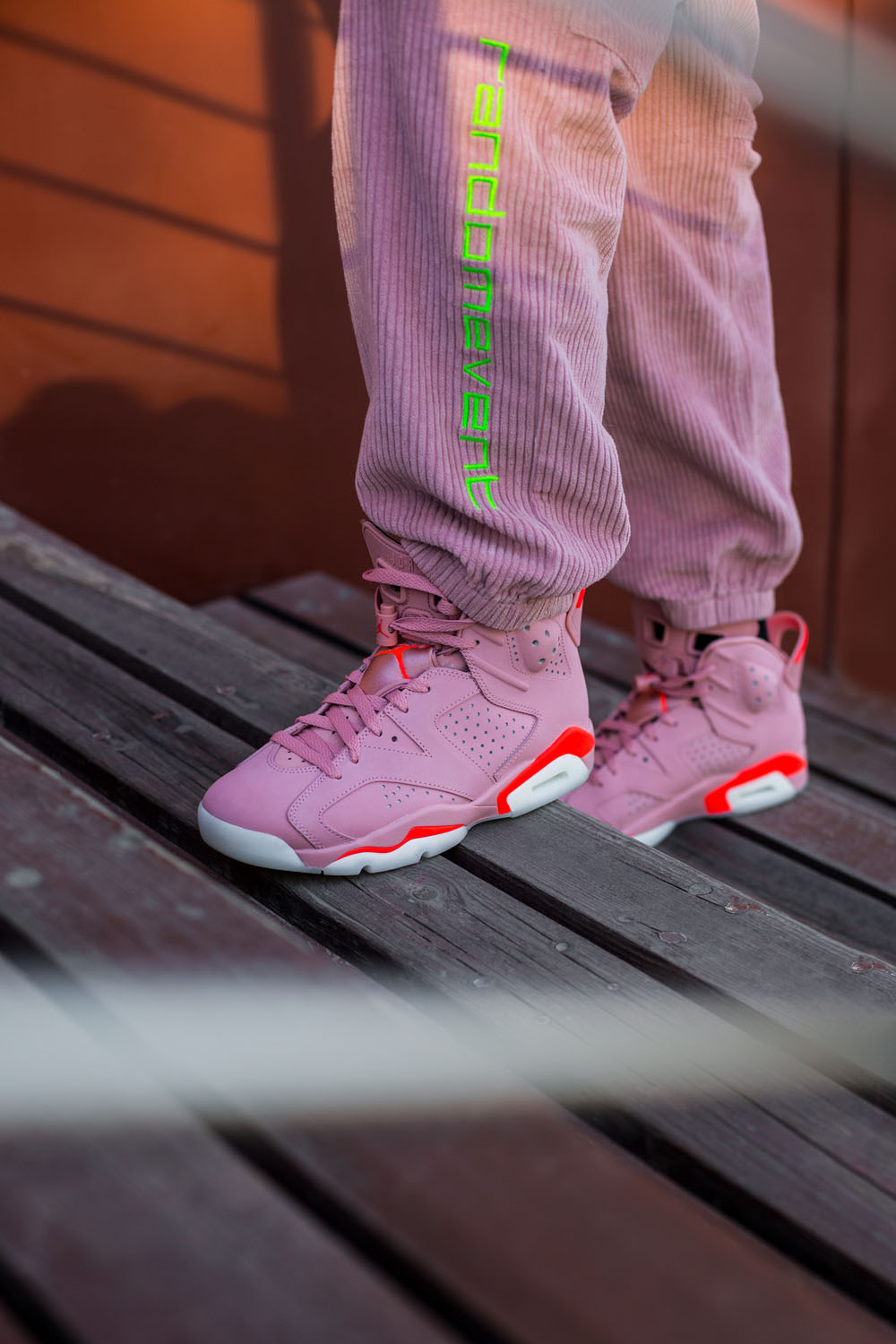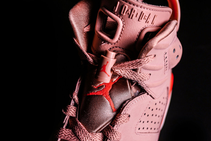 本周五 Jordan 阵营将有一双颇具关注度的新品发售,就是这双男女通吃的樱花粉 Air Jordan 6 “Aleali May”。